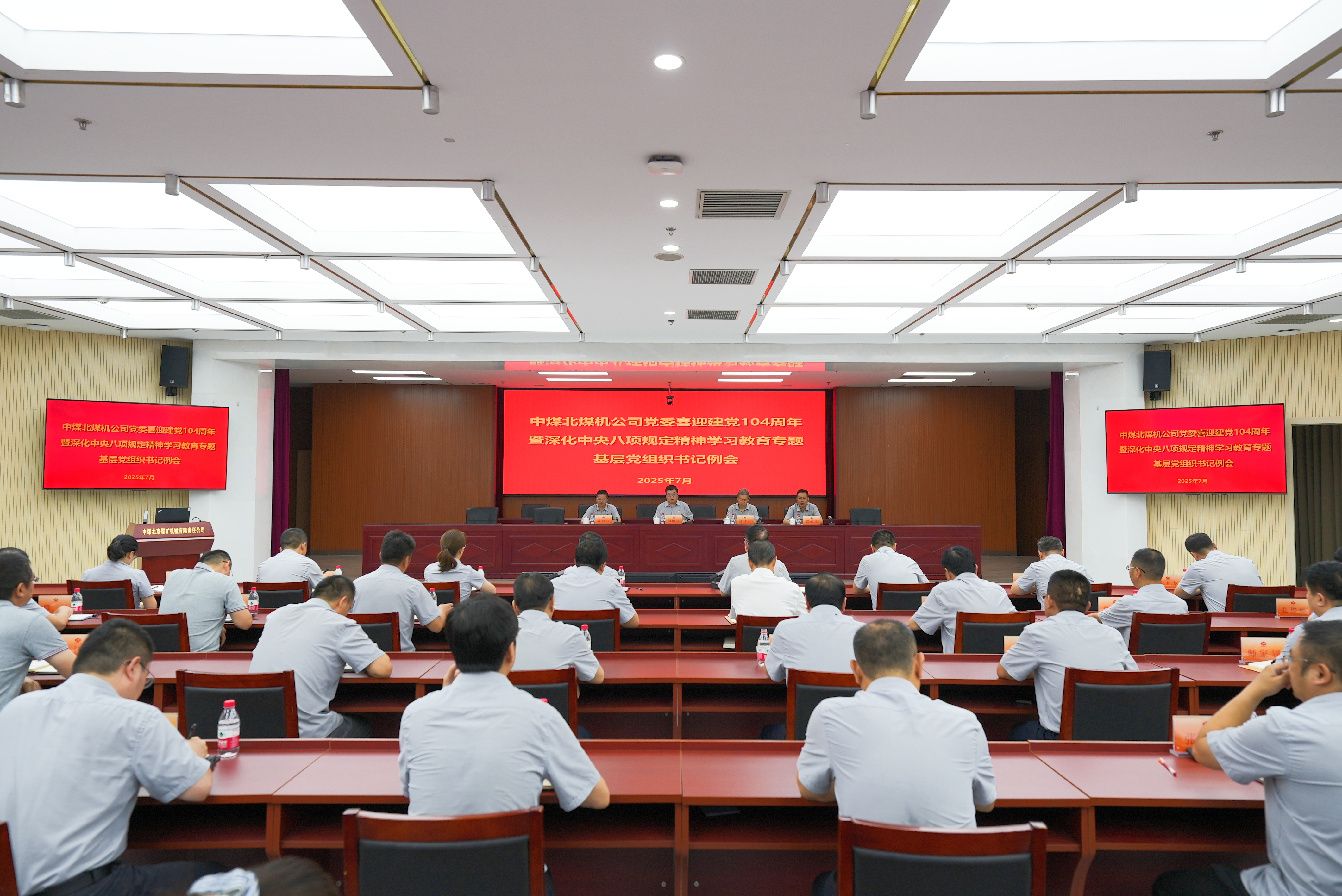 为庆祝中国共产党成立104周年,7月1日,北煤机公司党委召开喜迎建党104周年暨深化中央八项规定精神学习教育专题基层党组织书记例会。会议以“擎旗奋进新征程 聚力攻坚创一流 以高质量党建引领保障公司高质量发展开新局”为主题,全面总结上半年党建工作成效,部署下半年党建重点任务。会议学习习近平总书记重要讲话和重要指示批示精神,举行重温入党誓词宣誓仪式,传达集团公司相关文件精神,观看违反中央八项规定典型案例警示教育片。公司党委书记、总经理刘国柱主持会议并讲话,公司领导班子成员出席会议。
