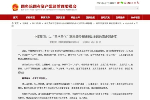 【国资委网站】中煤集团:以“三学三化”高质量读书班...