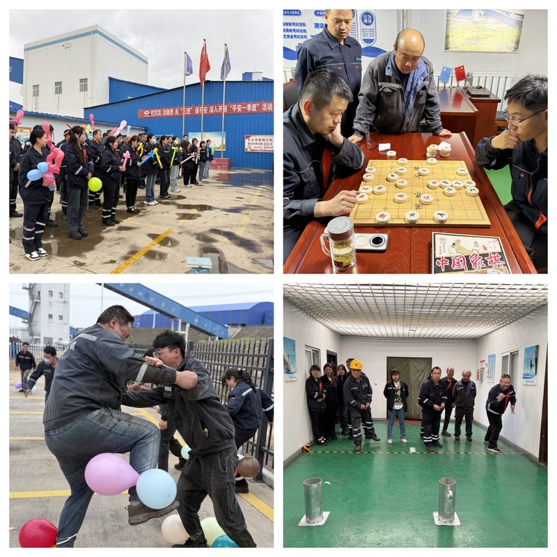 活动现场,个人赛项目妙趣横生。象棋对弈中,选手沉着落子,尽显智慧谋略;吹球过桥、吹蜡烛环节,职工们鼓足干劲,上演技巧与速度的较量;投壶比赛里,大家屏气凝神,专注瞄准目标,现场欢呼声不断。团队赛更是将活动推向高潮,气球保卫战中,各班组队员紧密配合,既要守护己方气球,又要灵活出击,场面紧张刺激;安全知识竞赛环节,每组选派代表组队抢答,队员们凭借扎实的安全知识储备,在答题中强化安全意识,展现团队协作风采。