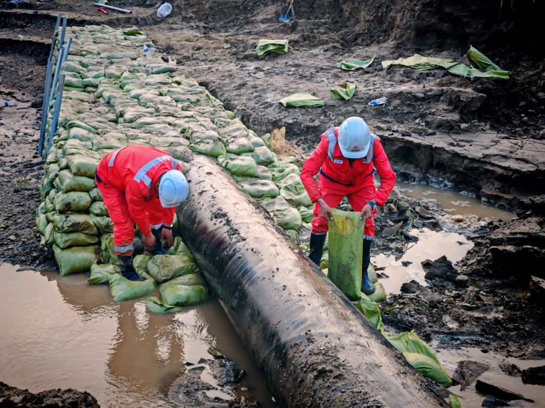 连续暴雨导致陕京一线管道山西省朔州市应县段突发多处险情。国家管网集团北京管道公司青年员工主动请战,组建抢险突击队,迅速赶赴抢险现场,争分夺秒搬运沙袋、加固管道,确保管道安全平稳运行。