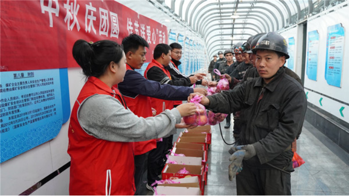 裕丰公司开展“中秋庆团圆 佳节送温暖”慰问活动,为节日期间坚守岗位职工和井下一线职工送上苹果、月饼等慰问品和节日美好的祝福,并叮嘱他们安全生产,快乐过节。