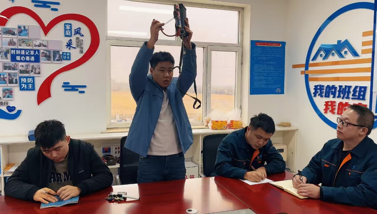 班前会质量“严把关”,压实责任链条。为确保基层安全管理落实到位,矿团委联合安监科成立专项检查组,对各科队班前会召开质量进行突击抽查。重点检查“三查、六讲、五确保、一抽查”流程执行情况,并随机抽考当班人员对作业风险、岗位应知应会及自救器30S盲戴等内容的掌握程度。对表现突出的职工给予现场奖励,对存在短板的班组提出整改建议,推动班前会成为安全生产的“第一道防线”。