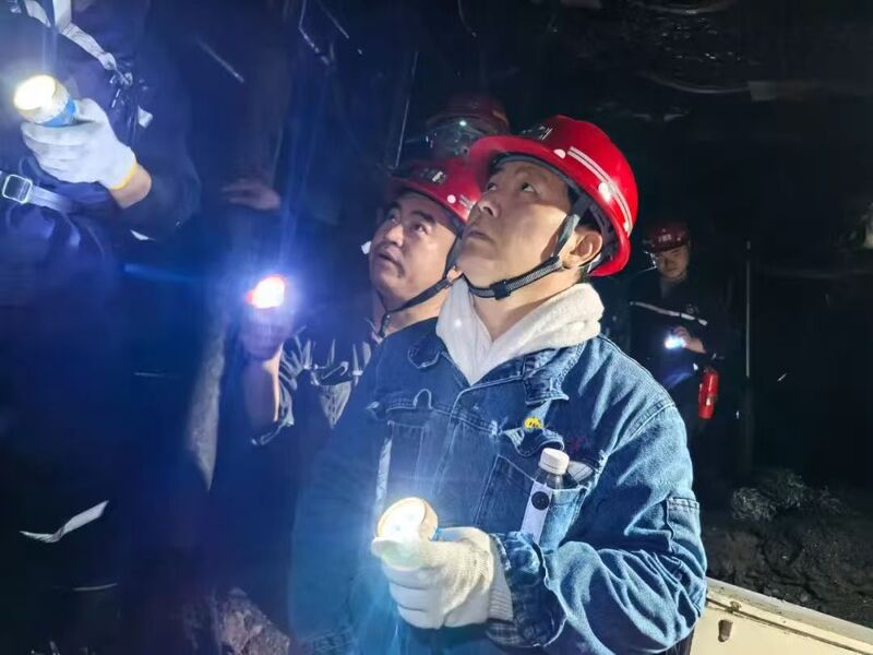 韩柏青深入井下S102综放工作面,详细了解现场安全管理落实情况、煤炭资源回收率、煤质管控成效等情况,听取了近期安全生产工作汇报,并与现场带班人员就破解管理难点、优化实操流程等进行深入交流。