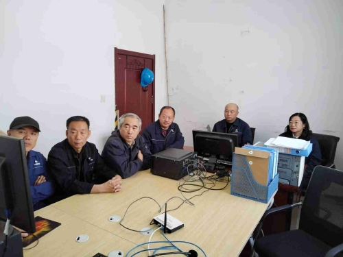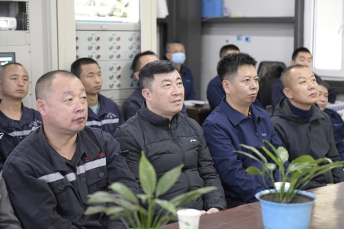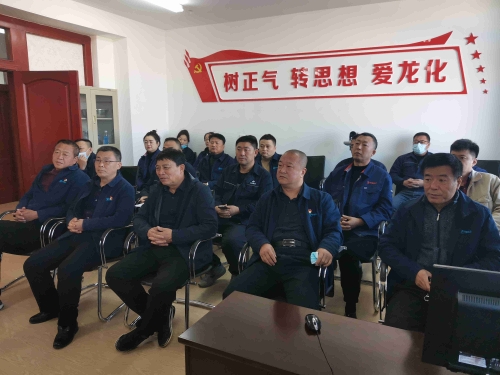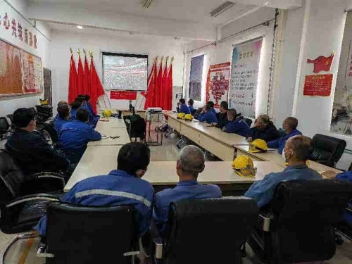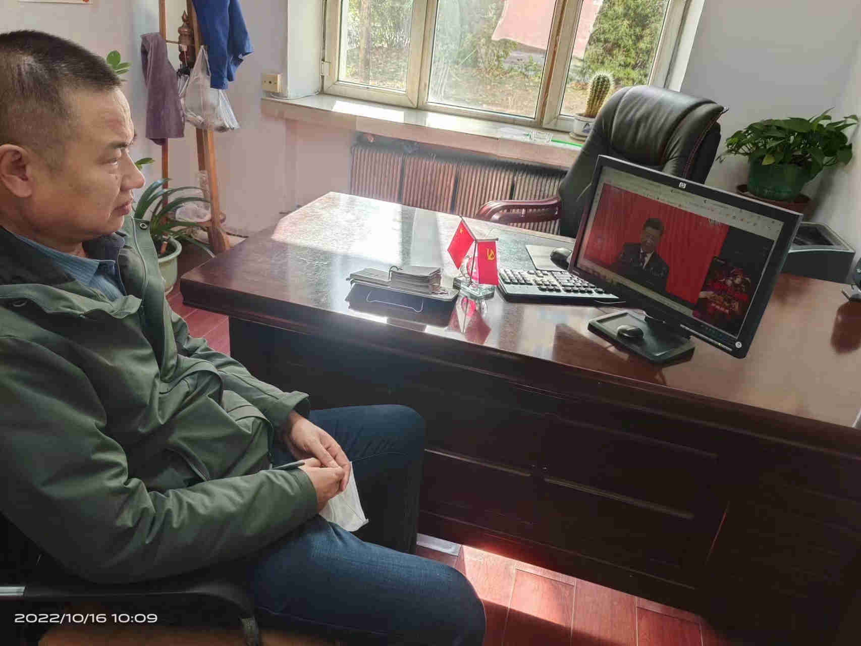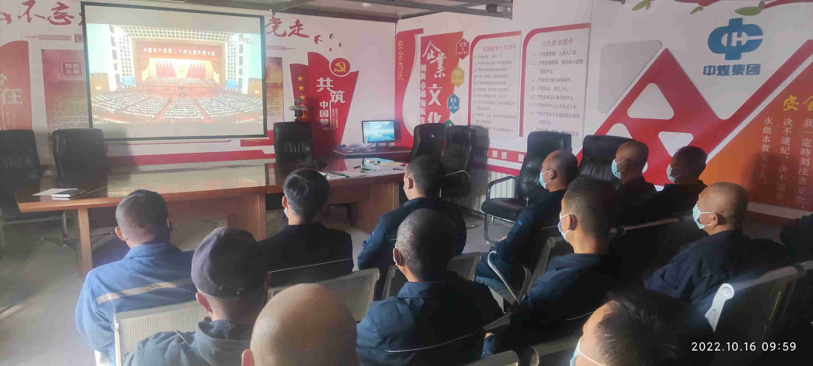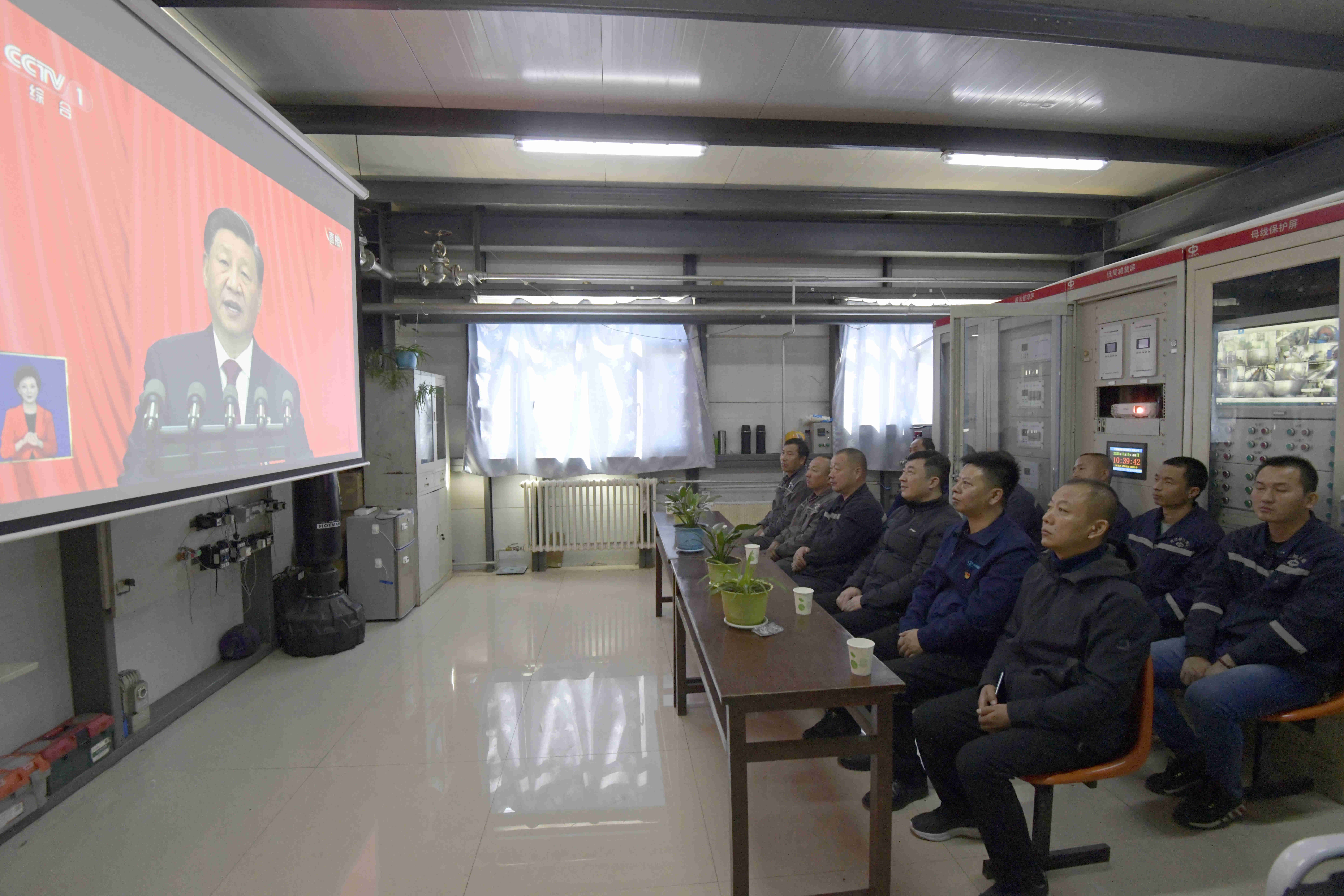 公司总经理张世钦、总工程师甄殿平在依兰三矿与党员干部一起观看中国共产党第二十次全国代表大会开幕会。