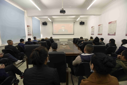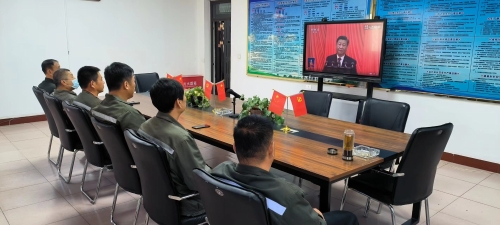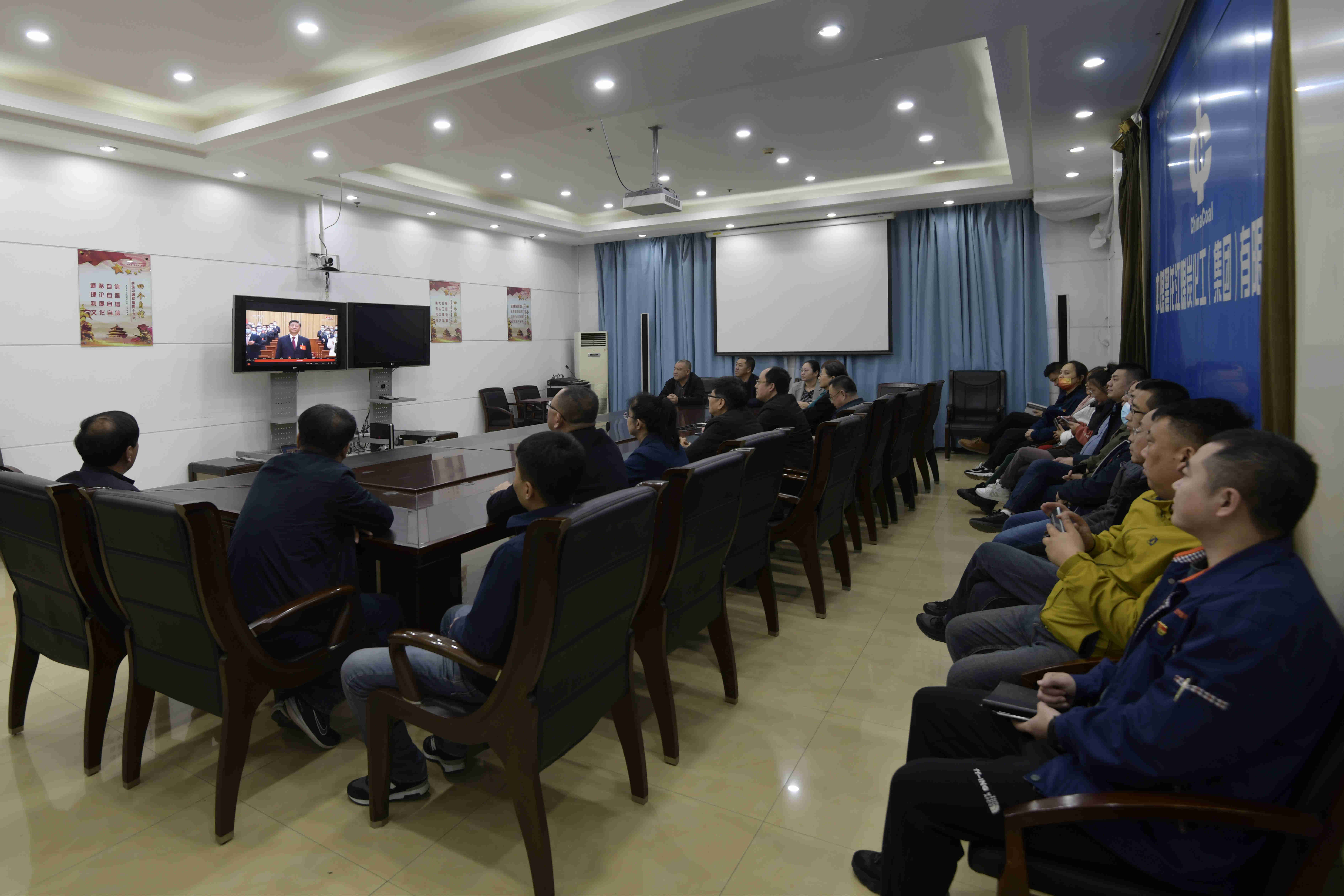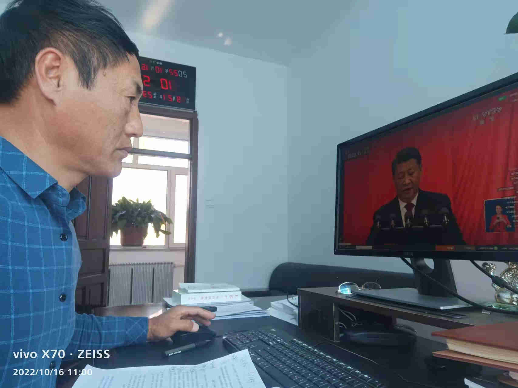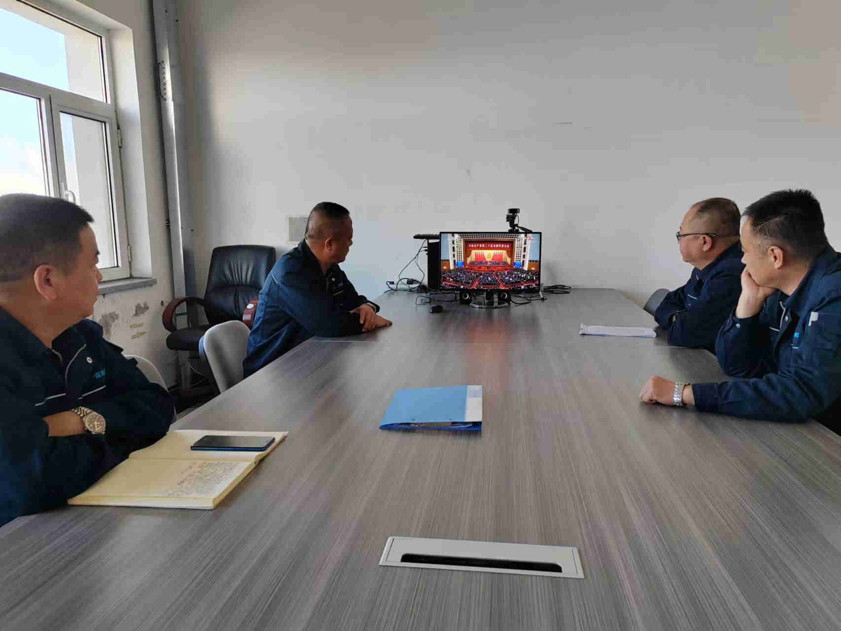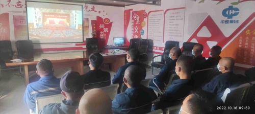 公司副总经理于辉光、总会计师李贵伦在公司205会议室与机关党员干部一起观看中国共产党第二十次全国代表大会开幕会。