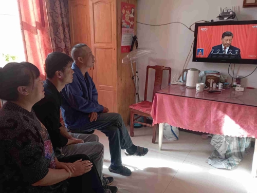 (供销公司干部职工在工作岗位和家中观看大会直播)