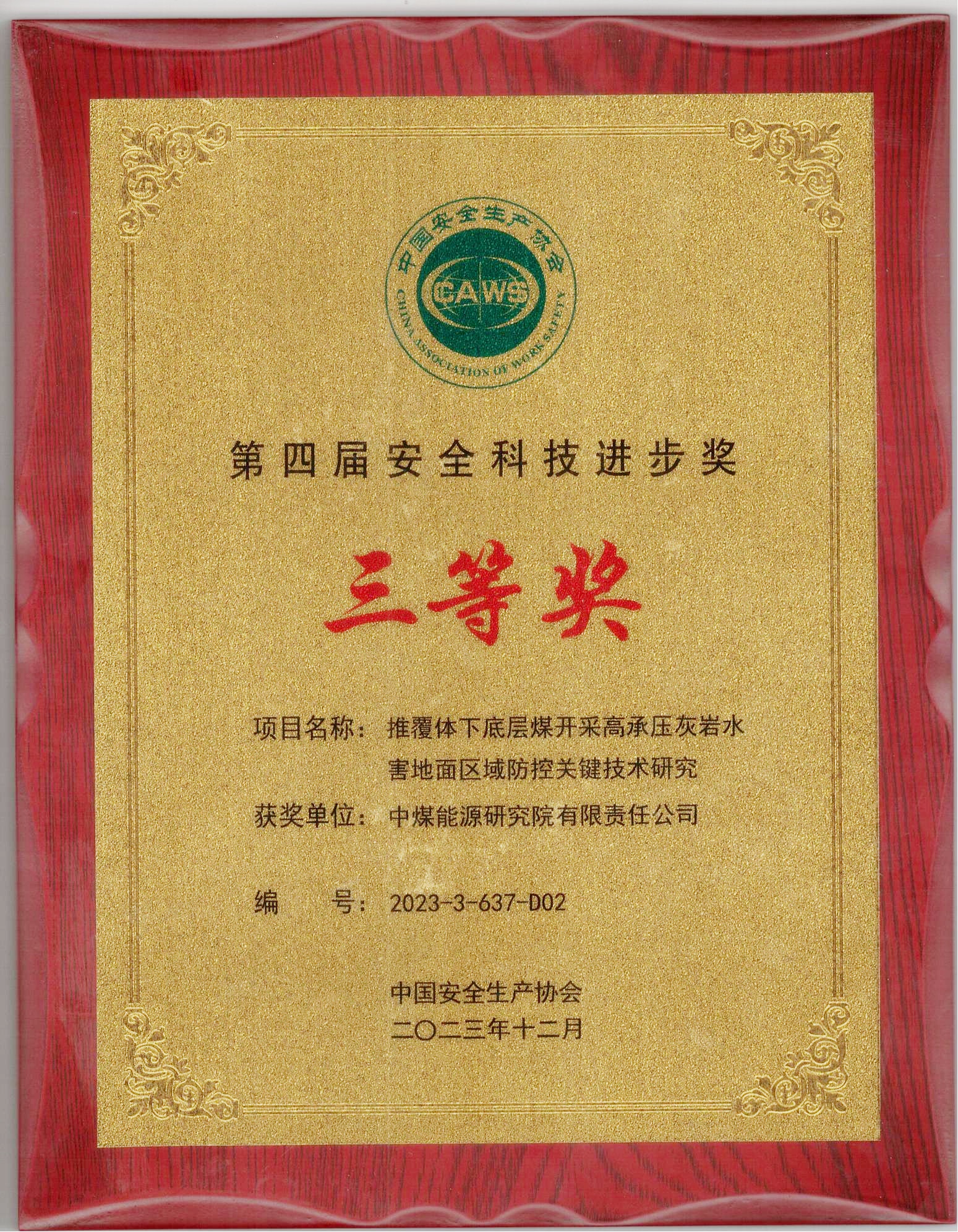 技术成果获得中国煤炭工业协会科学技术奖二等奖1项,中国安全生产协会科学技术进步奖三等奖1项,相关技术入选自然资源部《矿产资源节约和综合利用先进适用技术目录(2022年版)》。