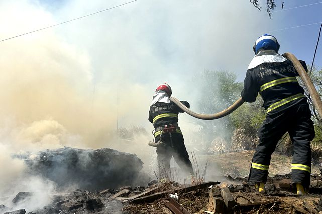 4月17日12时41分,横山区波罗镇康家湾村一羊圈旁木柴堆垛着火,应急救援中心随即出动8名指战员和2辆水罐消防车处置,现场共发现6处明火,过火面积约90平米。指挥员下令用消防车出两支多功能水枪进行灭火,50分钟后明火被扑灭,救援人员为防止木柴堆垛阴燃,再次进行检查,并帮助村民清理现场,确认无隐患后返回备勤。