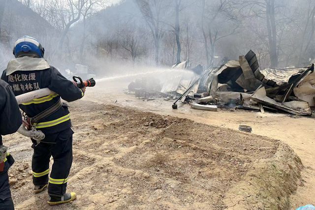 到达现场后,救援人员迅速开展火场侦察,发现着火区域为3间彩钢房,面积约100㎡,火势处于猛烈燃烧阶段,有蔓延至周边树林的危险。经咨询得知,为线路老化引发周围可燃物起火,现场无人员被困,无煤气罐类的压力储罐后,他们迅速铺设水带,形成水枪阵地,赵虎虎和崔辉辉在着火点西侧灭火,马世全操作车辆,刘玉团和王龙疏散群众,协同救援。经过30分钟的努力,火灾被成功扑灭。随后,应急救援中心驻矿人员面对面向村民传授“防火经”,增强村民消防安全意识。