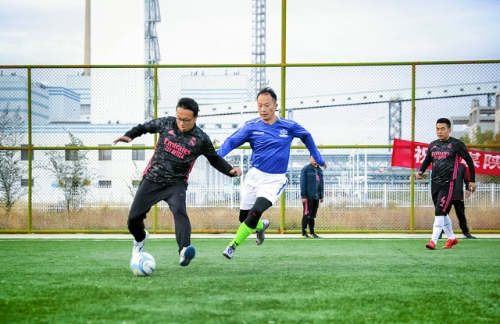 比赛现场,战况激烈,两支队伍你争我夺,互不相让,球员们驰骋在绿茵场上,他们快速疾跑、身如闪电,他们眼疾手快、先声夺人,时而侧身凌空射门,时而抢点头顶传球,充分展现了公司职工积极向上、顽强拼搏的精神风貌。