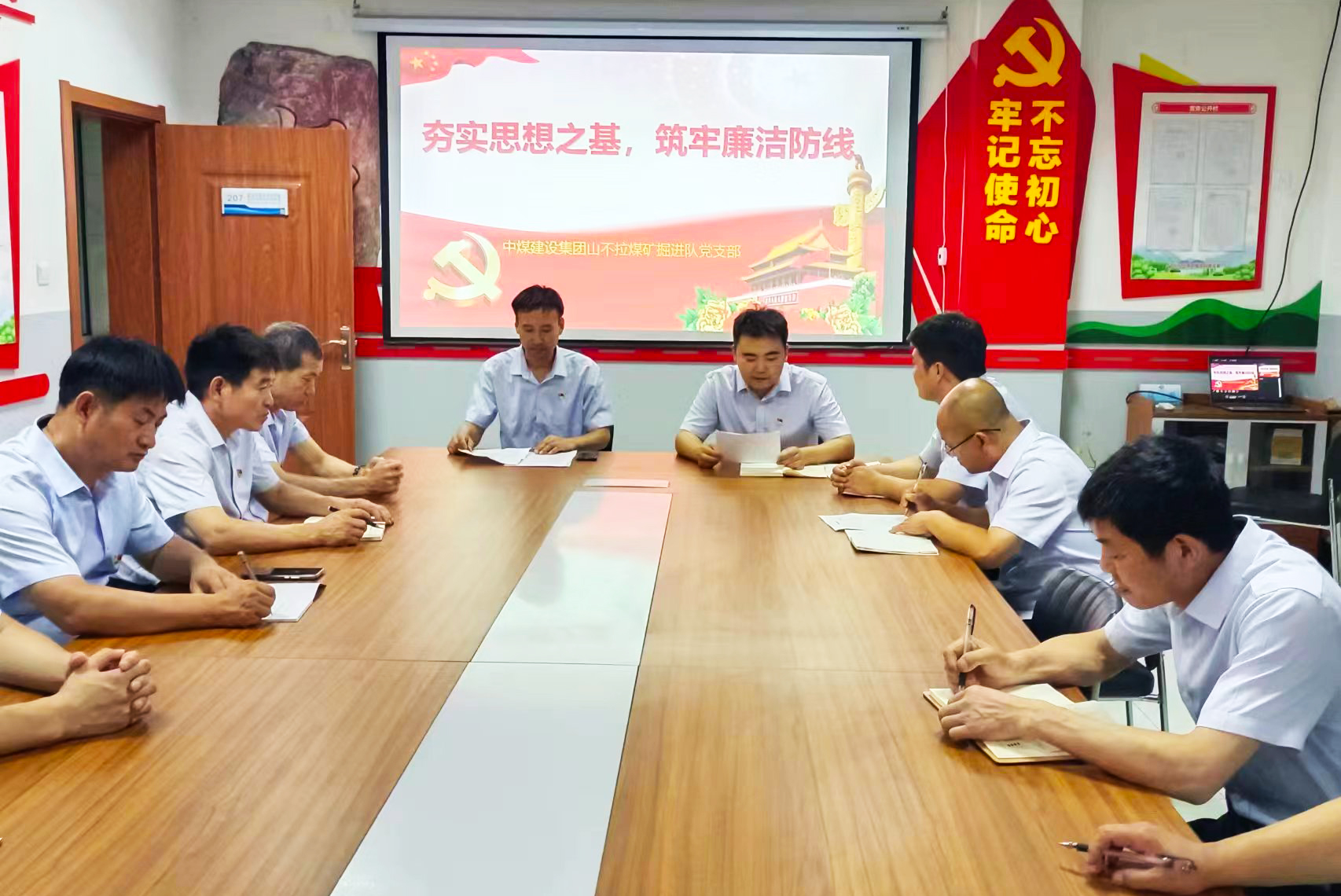 为进一步落实全面从严治党要求,增强党员干部廉洁从业意识,从源头上预防和减少腐败。8月1日,山不拉煤矿掘进队党支部邀请生产矿长郭文学同志,组织开展以“夯实思想之基,筑牢廉洁防线”为主题的集体廉洁提醒谈话会活动。