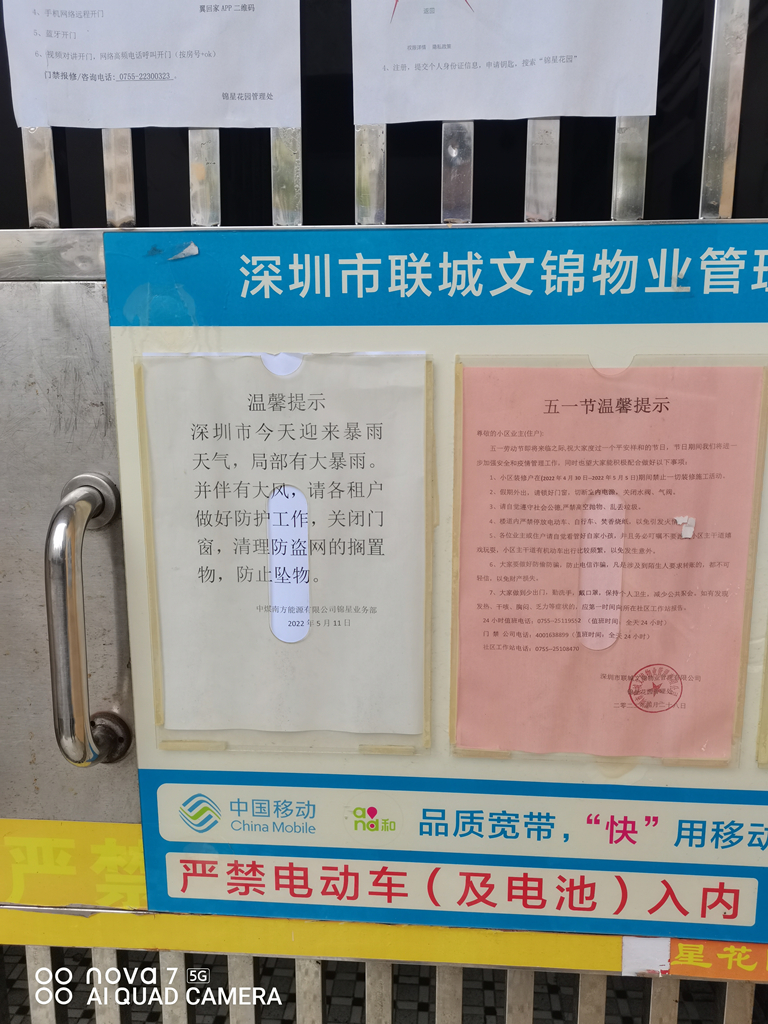 根据深圳市“三防办”5月9日预报:10日至13日有大范围的暴雨到大暴雨,并伴大风、雷电恶劣天气,会严重影响我市。公司领导高度重视,5月9日安排部署防汛工作,要求各业务部提前做好安全排查,发现隐患立行立改,确保暴雨恶劣天气不发生安全事故。