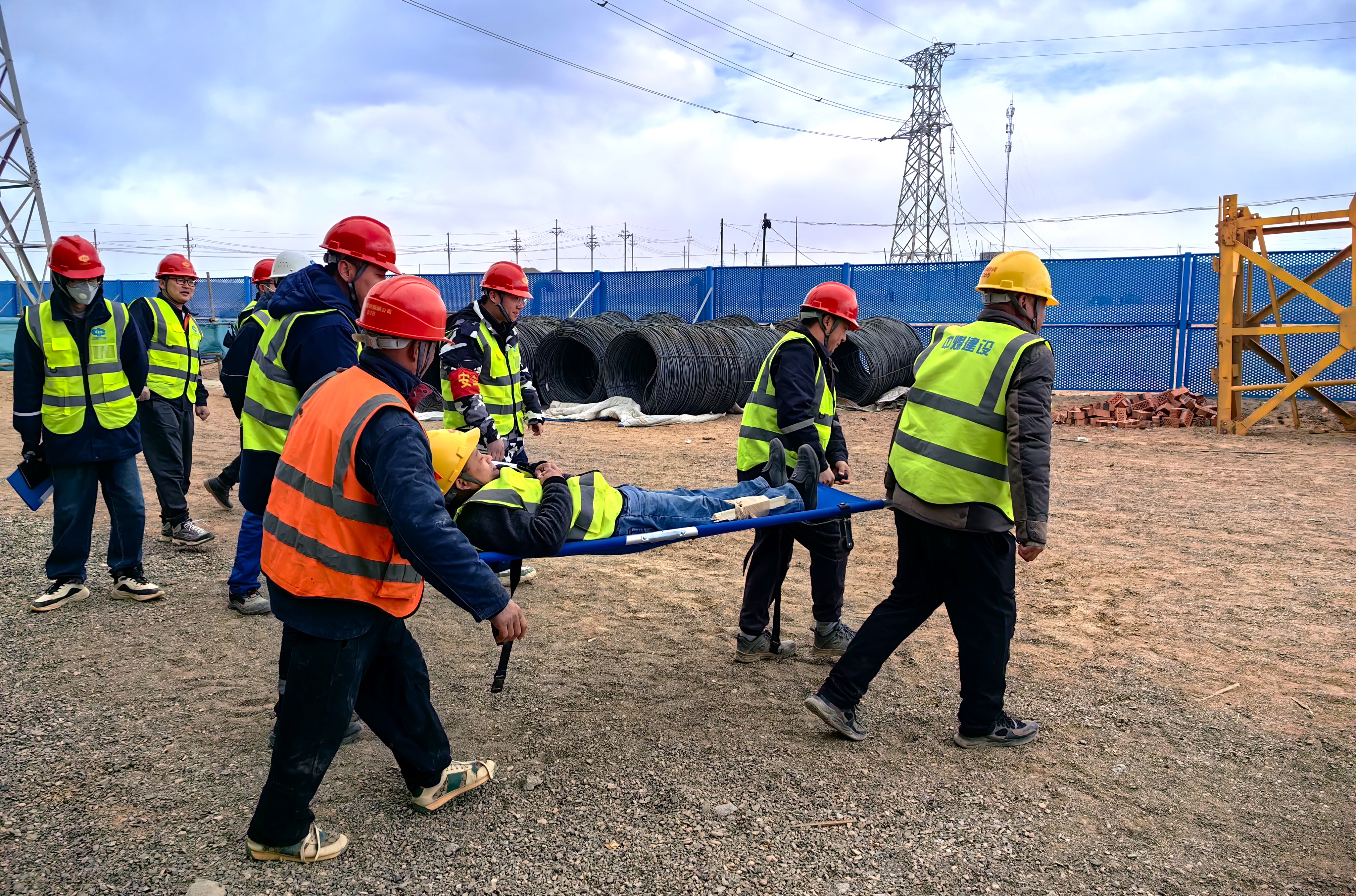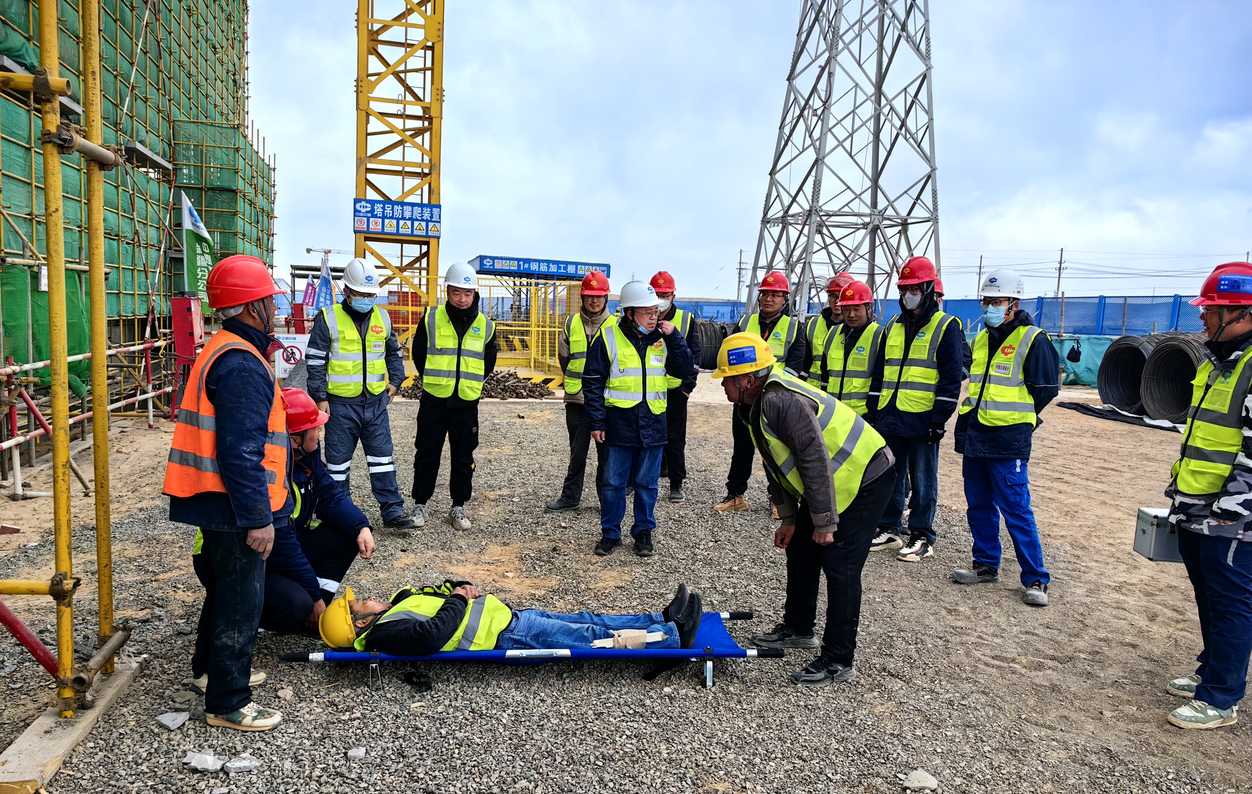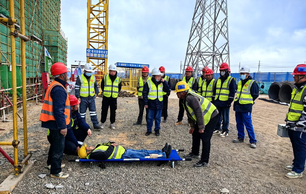 此次应急演练采取实战演练形式,模拟工人高处坠落事故。整个演练过程紧张有序,各小组配合默契,从事故发生到完成救援任务,仅用时25分钟,演练取得圆满成功,进一步强化了项目部全体人员的安全意识。