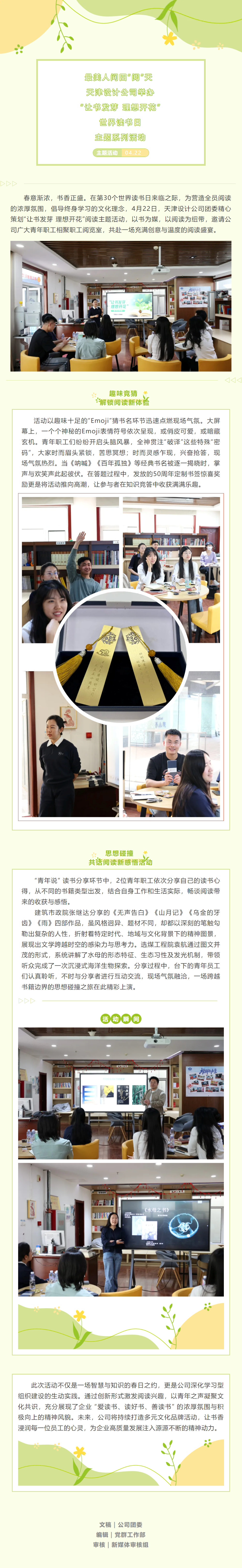 最美人间四“阅”天 | 天津设计公司举办“让书发芽 理想开花”世界读书日主题系列活动