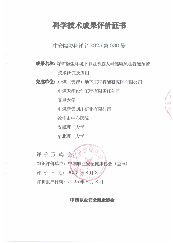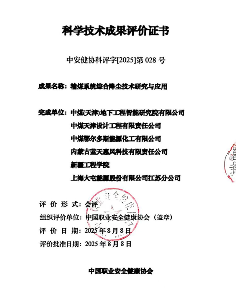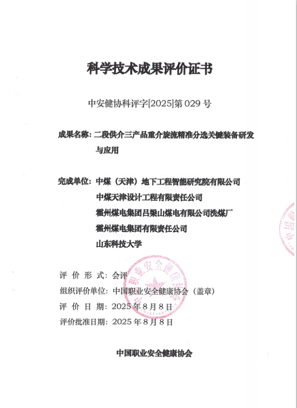 近日,中煤天津设计公司4项科技成果通过中国职业安全健康协会鉴定。其中,“二段供介三产品重介旋流精准分选关键装备研发与应用”被鉴定为国际领先水平,“煤矿粉尘环境下职业暴露人群健康风险智能预警技术研究及应用”“输煤系统综合降尘技术研究与应用”和“煤泥安全高效浮选及药剂精准添加系统关键技术研究与应用”3个项目被鉴定为国际先进水平。