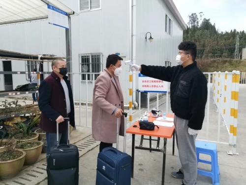 在三处,高黎贡山团支部青年为3月5日返岗的13名职工提供贴心、暖心的服务。在返岗职工到达前,团员青年们提前完善隔离区域的相关生活设施配置,对隔离区域进行全面消毒。返岗职工到达后,志愿者在项目部入口处设立了体温检测站,对返岗人员身体状况和返程路线进行登记,并发放口罩、消毒液、体温计等隔离防疫物品。中午时分,志愿者到隔离区为职工送去热腾腾的午餐,叮嘱返岗职工严格遵守隔离要求,加强个人防护,让返岗的职工真切的感受到,隔离的是疫情,而不是真情。