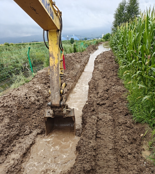 为有效提升防洪能力,公司组织60名专业作业人员,调配5台装载设备,对铁路专用线北侧护坡、排水涵洞等重点防区集中开展清淤加固,临时修筑砂石挡墙,累计装填防汛沙袋300袋。同时,开挖一条导流沟,引导上游水流直达泄洪通道,减轻了对园区的水位压力。