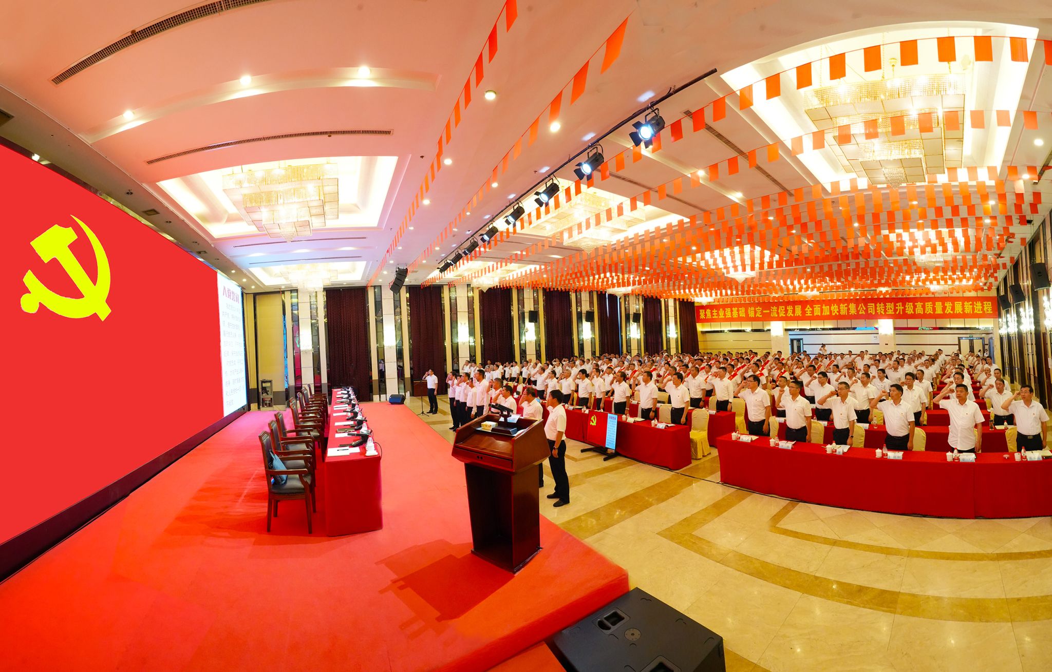 公司总师总助首席,公司机关部门主要负责人,各单位党组织主要负责人,受表彰的先进代表及新老党员代表,新集片区单位专职党支部书记参加会议。