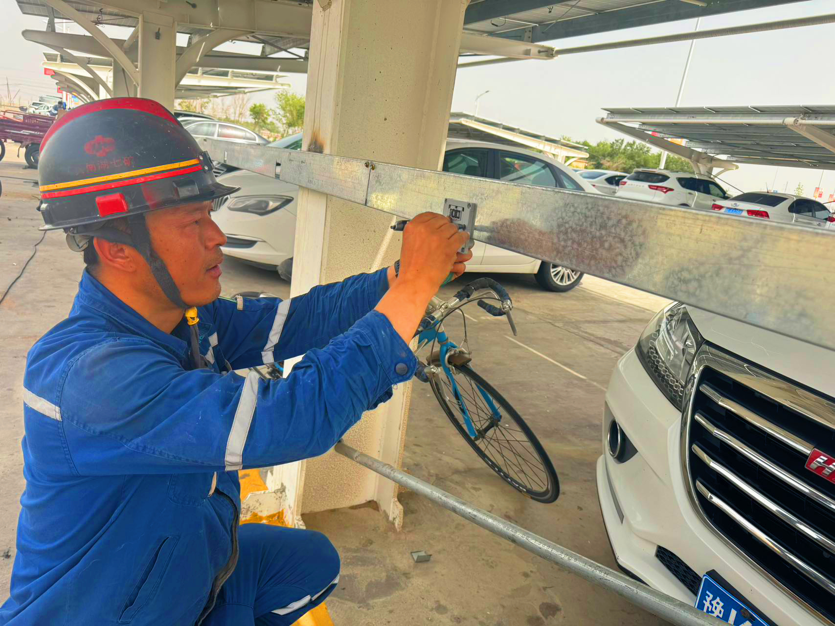 技术赋能,打造绿色充电样板。“这次改造不仅解决了充电难题,还实现了光伏发电与市电智能互补,既环保又经济。”机电队党支部书记王权介绍道。改造后的车棚采用太阳能发电与市电协同供电模式,白天优先利用光伏发电为电动车充电,夜间自动切换至联合建筑变电所供电,确保24小时不间断充电。经实测,该模式使光伏发电利用率显著提升,年均可节约电费支出15万元。在设备选型上,公司严把安全关,所有充电接口均符合国家3C认证标准,并集成过载保护、漏电监测等多重安全防护功能,让职工充电更安心。