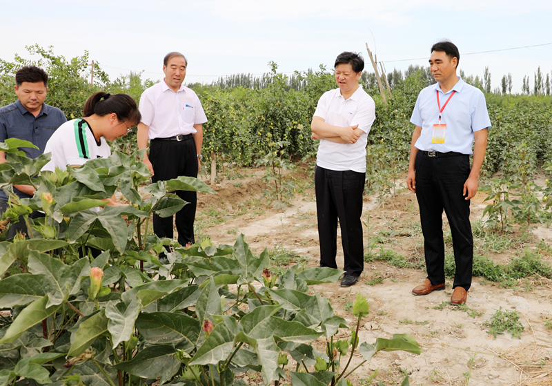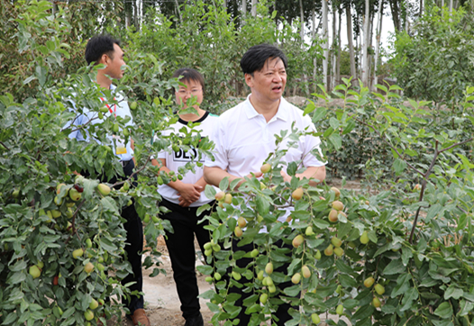 在工作队引领组织培植的红枣棉花间作种植地,一排排枣树硕果累累,一颗颗翡翠玛瑙般的枣儿挂满枝头,微风吹拂,甜香扑鼻。走进齐腰深的棉花棵,李延江俯身察看长势,询问田间种植管理、销售价格等具体情况。据工作人员介绍,目前,工作队以科技帮扶为重点,以林、果、棉丰产增收为突破口,每年聘请农业科技专家来村现场传种植管理技术,成功帮助村民实现了增产增收。