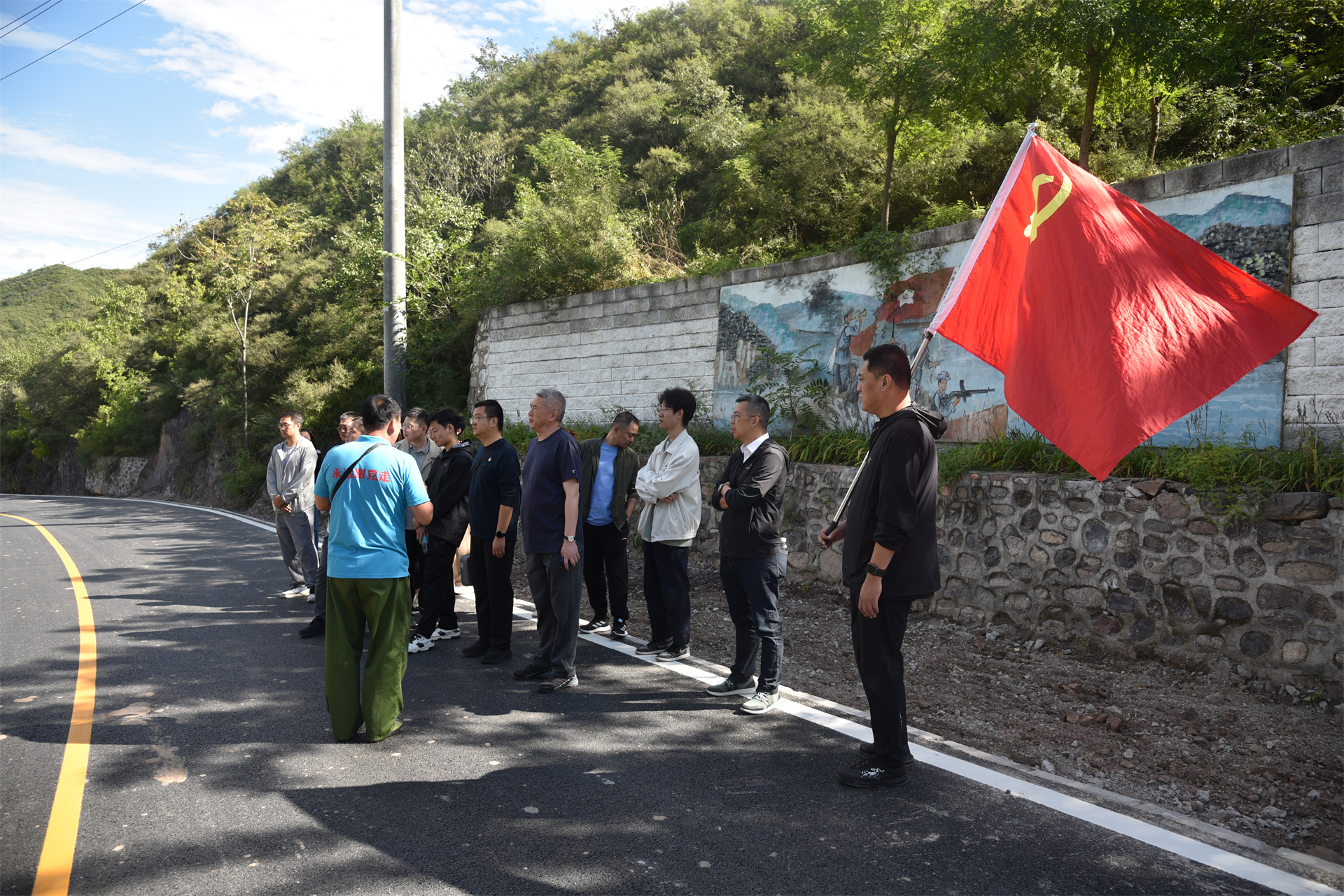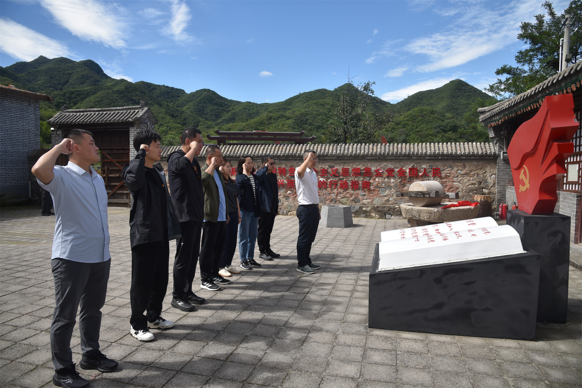 本次活动选择了昌平区狼儿峪红色爱国主义教育基地,首先向高崖口革命烈士纪念碑敬献花篮、鞠躬致敬,随后在“微走长征路”途中听取血战湘江、遵义会议、四渡赤水、胜利会师等12个节点长征故事的精彩讲解,参观了昌宛联合县革命历史展馆及武装部旧址,大家认真听讲解,不时驻足观看革命先辈的珍贵遗物,并集体重温了入党誓词、高唱没有共产党就没有新中国。