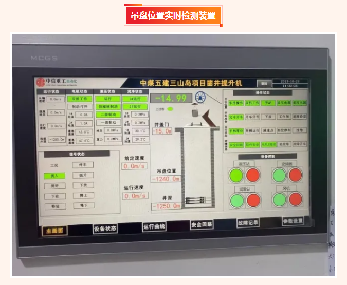 提升机根据提升容器和吊盘行程位置,以及提矸、提人、下砼和特运等提升模式,对不同吊盘位置(井深)的等速过速、包络线过速、过卷等进行监视,实现行程闭环控制。通过1台提升机实时检测的吊盘位置,利用PLC通讯接口可以将数据同步传输至另外2台提升机,实现实时共享吊盘位置,节省了设施投入。