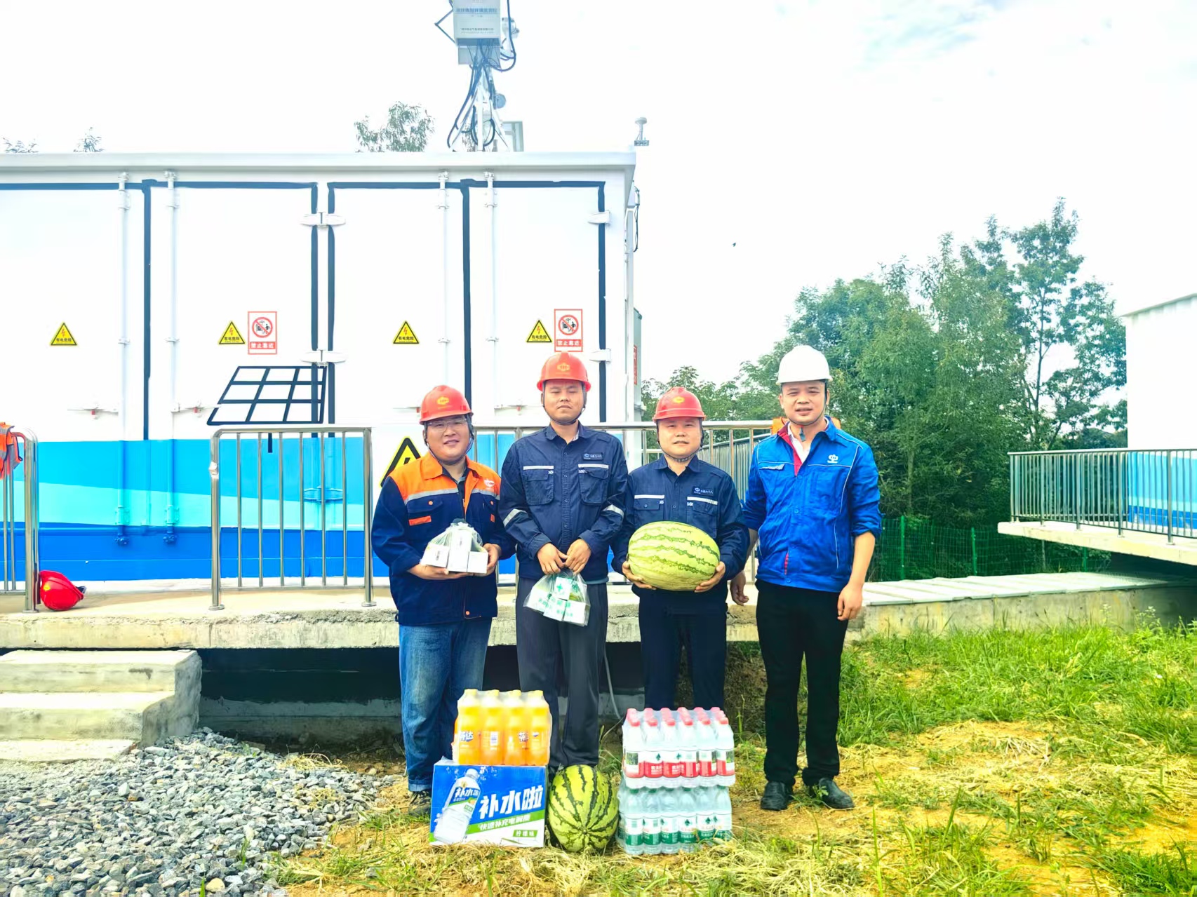 8月6日上午,中煤绿能(广元)新能源有限公司电力主管曹志明一行到昭化卫子镇石井铺地面分布式光伏电站对现场值班人员开展夏日送清凉慰问活动。