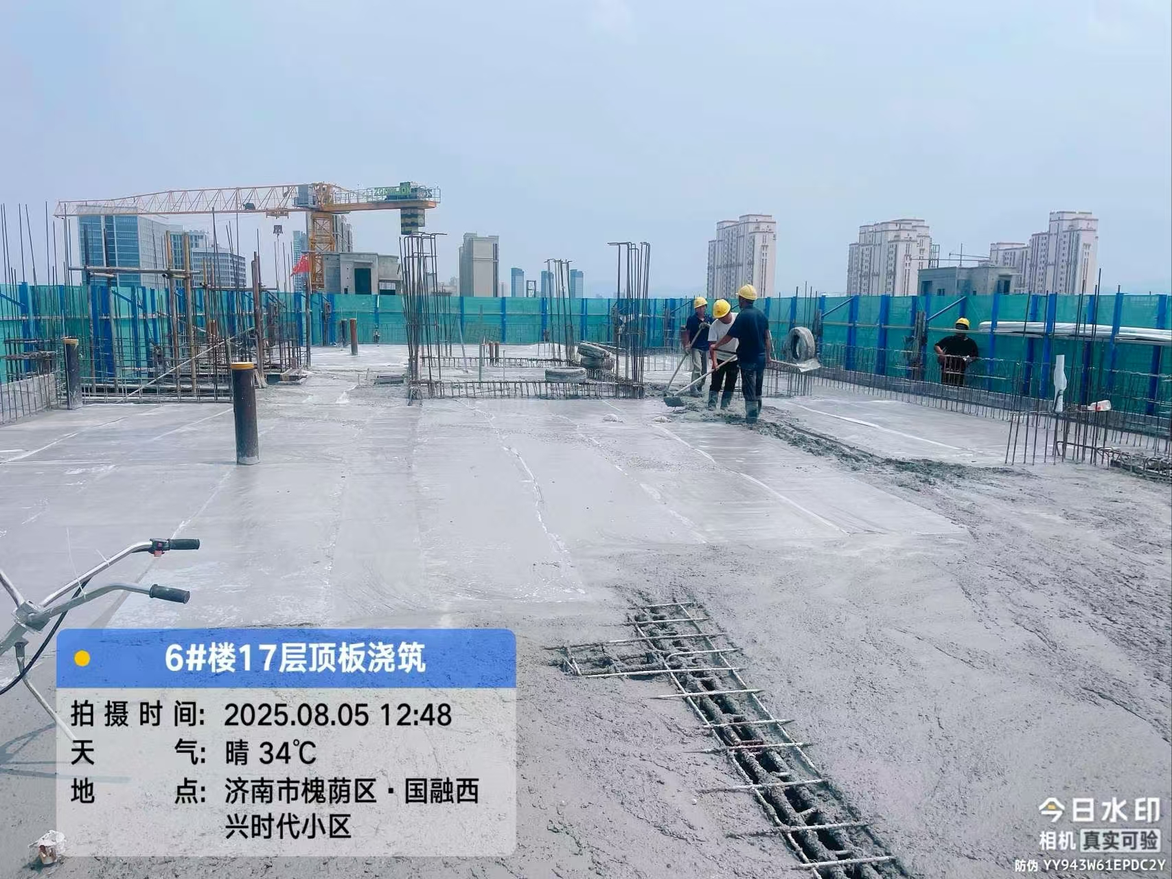 8月5日下午,随着6#楼顶层最后一方混凝土浇筑完成,济南琅悦项目B-1-3地块所有住宅楼主体结构顺利完成封顶。这一重要节点的达成,标志着项目建设取得了阶段性成果。