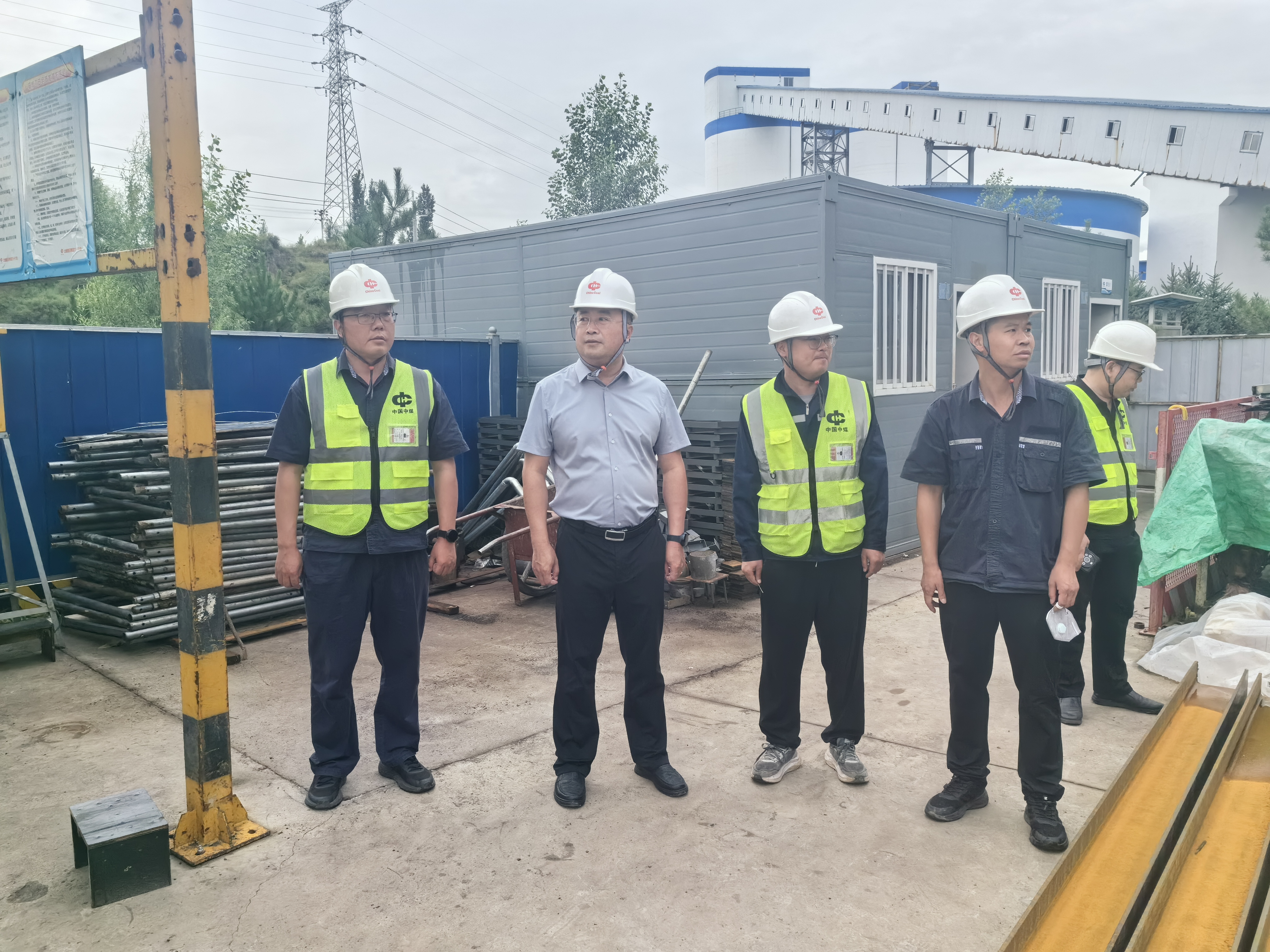 在机电安装公司魏家峁设备安装项目,赵辉重点查看了现场安全防护设施、临时用电的安全管理及施工人员安全防护措施落实等情况,在非标加工制作场地、空压机房及筛分破碎车间三楼实地了解了现场实际作业环境及分级筛的拆除安装施工方案,赵辉指出:一是设备拆除安装是项目关键环节,必须确保方案的实操性、安全性,各种技术参数应符合设计及规范要求。二是在设备拆除安装前一定要做好安全施工策划,各岗位人员要提高思想认识,严格落实安全生产主体责任,将安全生产管理贯穿于施工全过程,杜绝“重进度、轻安全”的行为,必须把“安全”放在第一位。三是积极推进土建主体工程和机电设备安装工程的施工进度,加速推进设备入场、设备安装施工方案编制及应急处置预案编制等工作。
