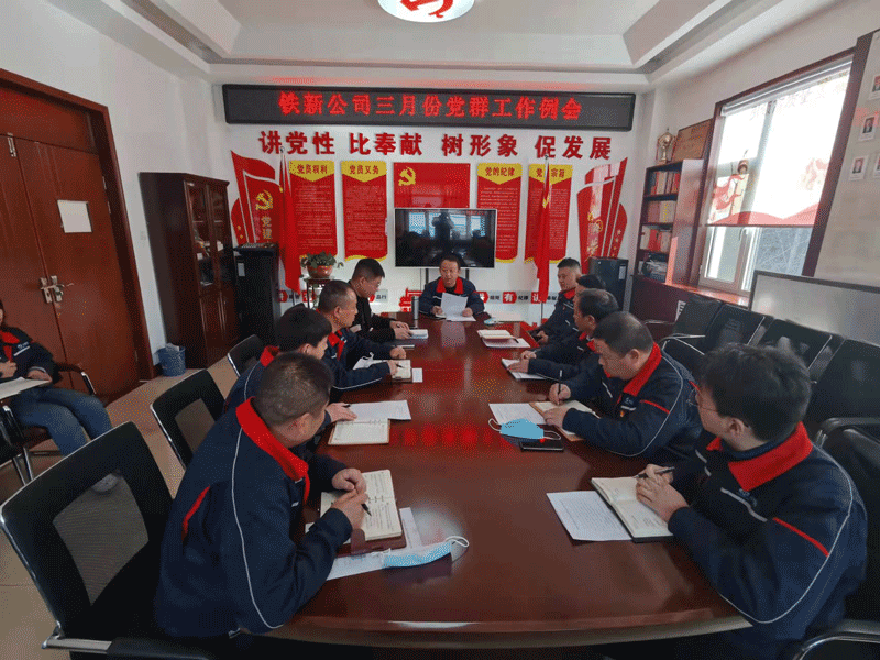 3月1日,铁新公司党委召开3月份党群工作例会,会议贯彻学习上级会议精神,全面总结分析了2月份党建工作,安排部署了3月份党建任务,通报了各党支部党建工作考核情况和工作中存在的问题。公司党委副书记、纪委书记刘克松主持会议并讲话,副总经理、工会主席郑宝出席会议。
