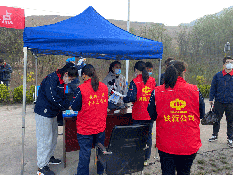 “各单位注意了,明天灵石县将开展全员核酸检测工作,要在我们公司要设立一个核酸检测点,下面我分配一下任务,疫情防控办负责核酸检测的总体工作协调……机电区负责核酸检测会场的布置……保卫科负责现场的秩序维护……”早工作会上安全副矿长刘晓柱正在有序安排的全员核酸的准备工作。4月19日,中煤华利铁新公司按照灵石县疫情防控办的工作要求,在矿区设立了核酸检测筛查采样点,积极承担起附近18家厂矿企业2000余人的核酸检测工作。为全力高质量完成本次核酸检测工作,铁新公司高度重视、提前部署,积极做好检测场所布置、人员分流安排、现场消杀、志愿者服务、党员先锋岗等各项前期准备工作。开展核酸检测期间,中煤华利铁新公司严格按照疫情防控要求,党员青年志愿者身穿白色防护服,变身“大白战士”全身心投入到战斗中,有序组织参检人员进行核酸检测。在防控的战场上,不断有党员青年志愿者力量补充,处处可见党员青年志愿者的身影,鲜红的党徽在洁白的防护服上熠熠闪亮。他们忙前忙后,靠前指挥,及时补位,协作互助,在工作人员与志愿者的引导下,大家有序地登记、扫码、检测,采集工作有效、顺利地进行着。同时为了不影响矿井的正常生产,合理安排生产岗位人员进行优先分批次错峰检测,做到防疫防控和安全生产两不误。在历时5个多小时,高效完成了核酸检测工作。彰显了央企使命担当,助力了疫情防控工作。