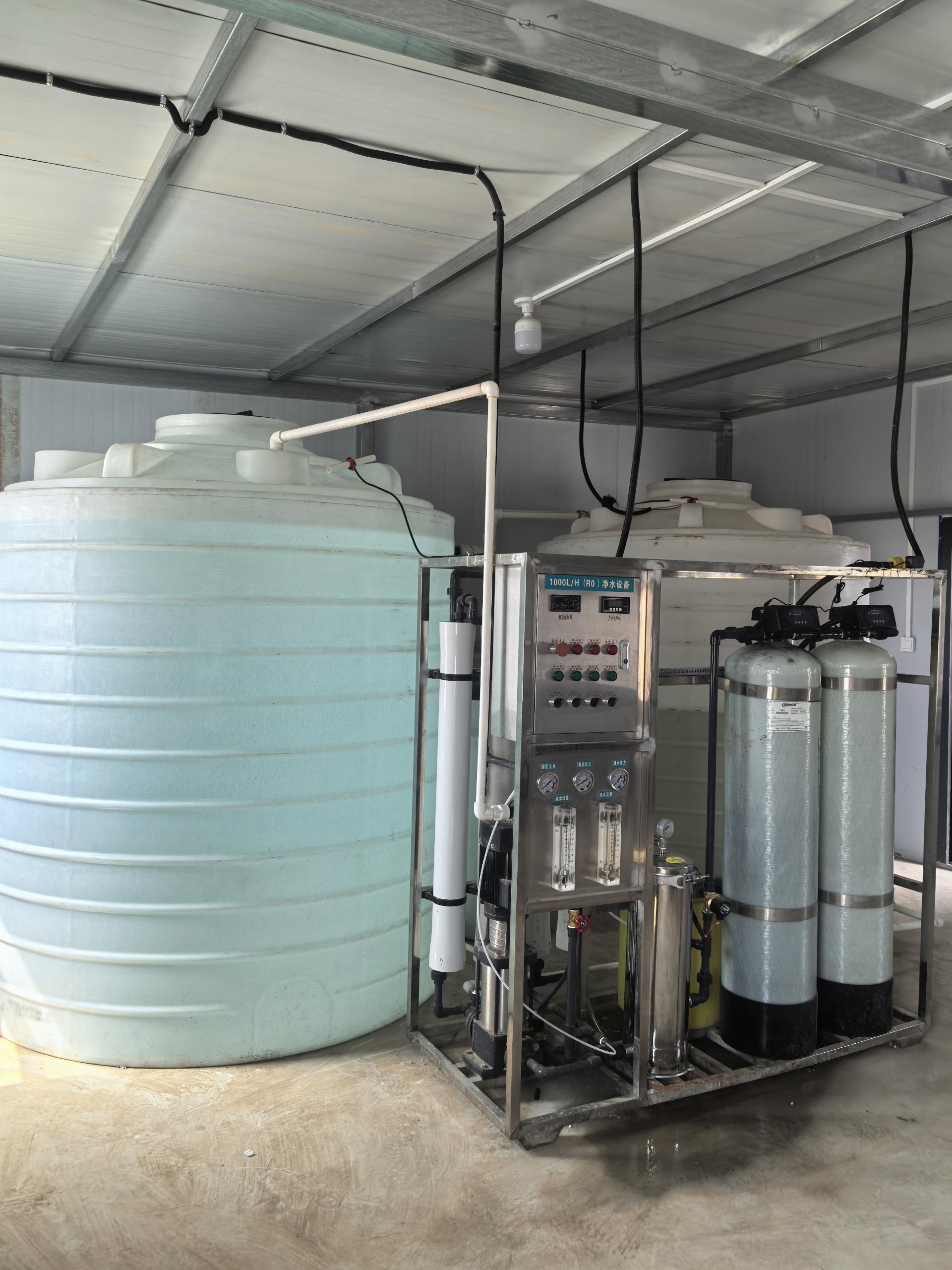 该系统采用多级物理过滤工艺,有效去除水中悬浮物和杂质,后段配置深度净化装置,进一步优化水质关键指标,净化后的水源经专用储水设施保存,可通过底部输水管道直达生活区,满足600人用水需求。