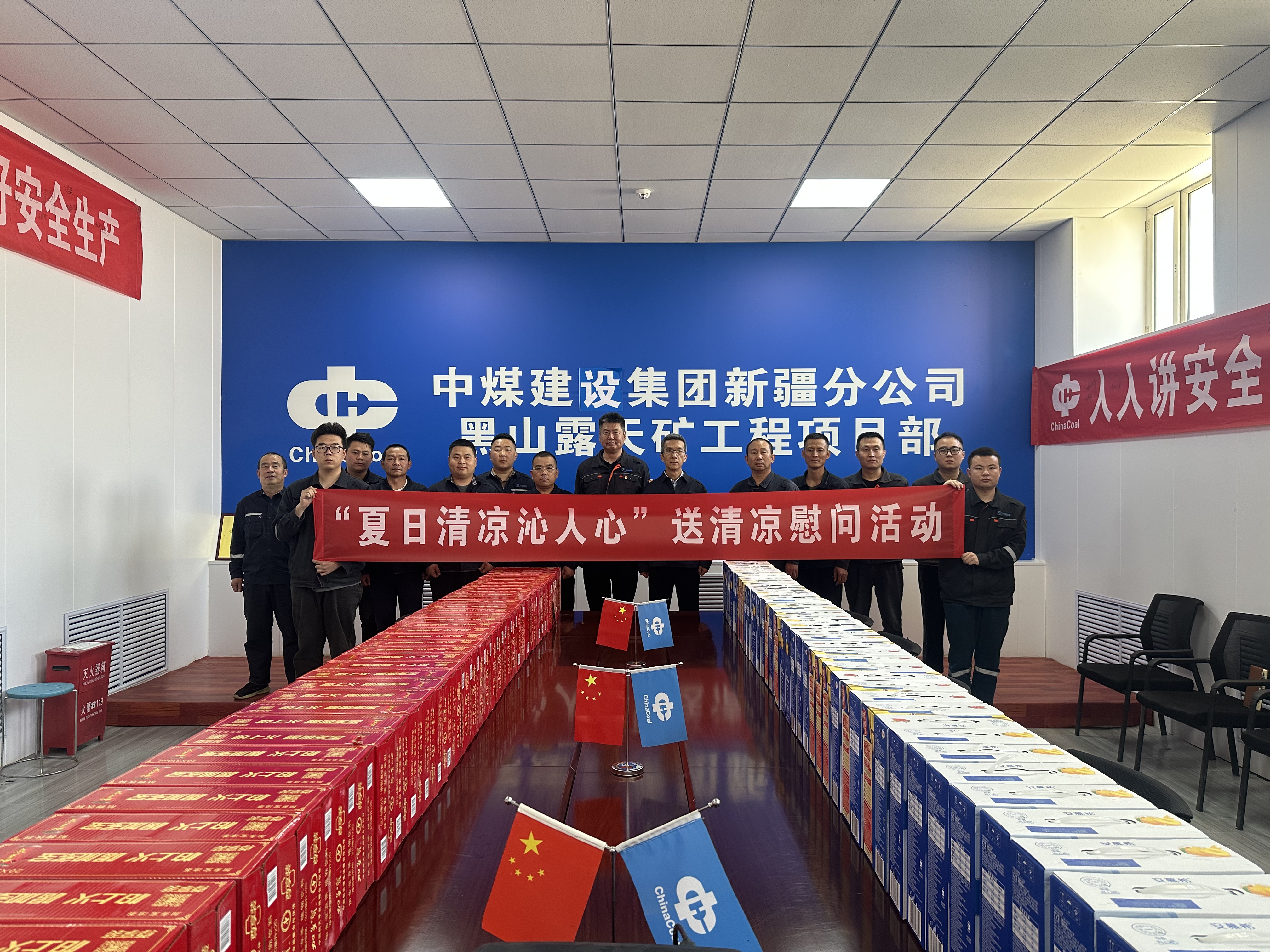 活动中,王俊杰到黑山露天矿工项目部慰问一线职工,详细了解职工的工作生活情况,叮嘱职工注意劳逸结合、做好安全防护,并送上凉茶、酸奶等慰问品。分公司所属其他项目部向一线职工发放防暑茶、雪糕、西瓜及绿豆汤、柠檬水等防暑降温物资,并充分利用班前会,向职工讲解中暑症状识别、科学补水方法、夏季饮食禁忌等应急救助知识。同时,精心筹备并完善“爱心药箱”,配备电子血压计、测温仪、藿香正气水、速效救心丸等常用医疗物品,切实做好后勤医疗保障。