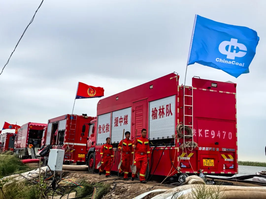 大功率水泵的轰鸣声,成为灾区最动人的声音。为守住排水防线,中煤榆林队始终坚持排涝效率与安全管理并重,将安全视作不可逾越的底线。