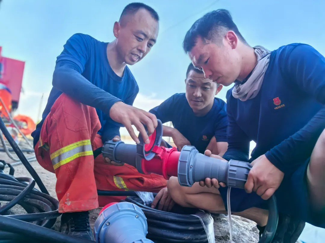 从河南到湖南,再到内蒙古,作为第三次跨省执行任务的“老兵”,中煤榆林队不仅具备丰富的抢险救援经验,更深知高效救援离不开科学规范的流程。他们坚持标准化作业,水带铺设横平竖直,接口衔接严丝合缝,设备布局科学规范,这些近乎苛刻的细节,都是与洪水抢时间、为生命护航的过程中总结出的最快最稳的方式,早已从日常备战训练中固化为每一次出险的工作标准,使他们成为多支救援队伍信赖的“标杆样板”,甚至吸引同行现场学习。