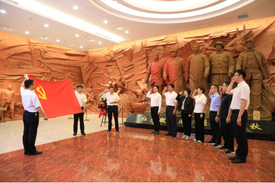在微山岛铁道游击队纪念园,共建支部党员面对鲜红的党旗,庄严地举起右拳宣誓,重温入党誓词。在讲解员带领下,认真聆听铁道游击队的英雄事迹,重温那一段峥嵘岁月,感受思想上和心灵上的红色革命精神“洗礼”。