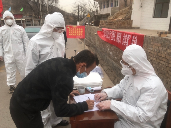 “您好,请出示健康码和行程码,在这边量一下体温,谢谢!”近日,中煤华利荣欣煤矿志愿服务队来到曹家崖底村各卡口开展疫情防控志愿服务活动,对进出人员、过往车辆进行登记,以实际行动助力疫情防控。